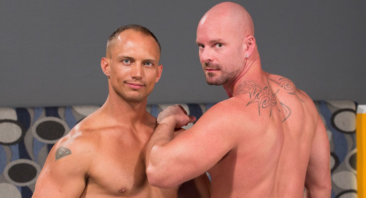 Men. Muscle. Meat. We've got it all with John Magnum and Mitch Vaughn. These two studs hit the LIVE set horned up and ready for action. John stands up and fucks Mitch's face then gets down between his legs to swallow his cock. For being such a major top, John's a surprisingly good cocksucker. John goes back into full top mode as soon as he gets a look at Mitch's big muscular ass. He bends the 6' stud over the corner of the bed and pounds him hard. There's plenty of ass-eating and more fucking followed by a j.o. session where John squeezes one out on Mitch's ball sack then feeds Mitch his tasty ass while Mitch jacks off and cums.